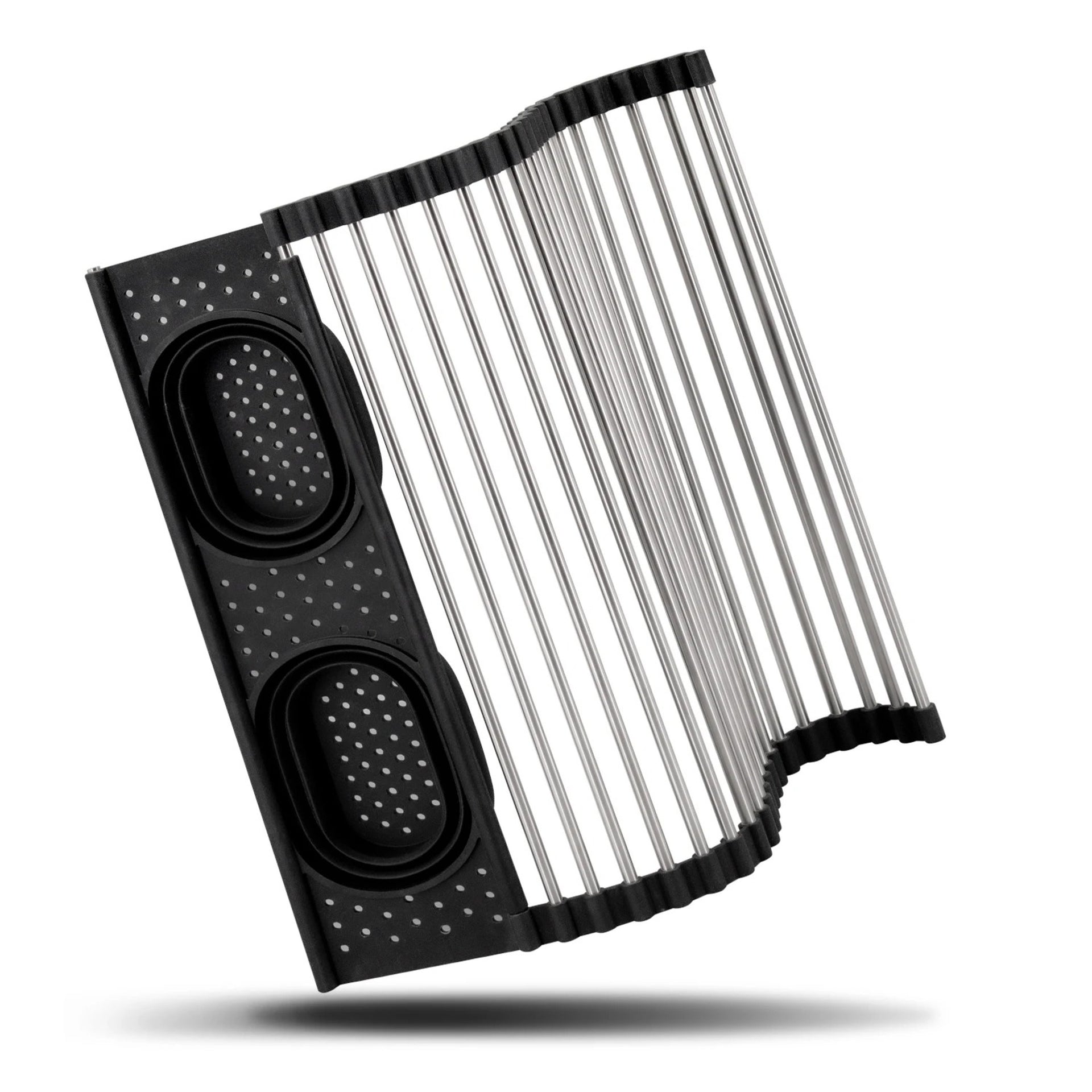 Scurgător multifuncțional pentru chiuvetă, realizat din oțel inoxidabil, prevăzut cu 13 tije rezistente.