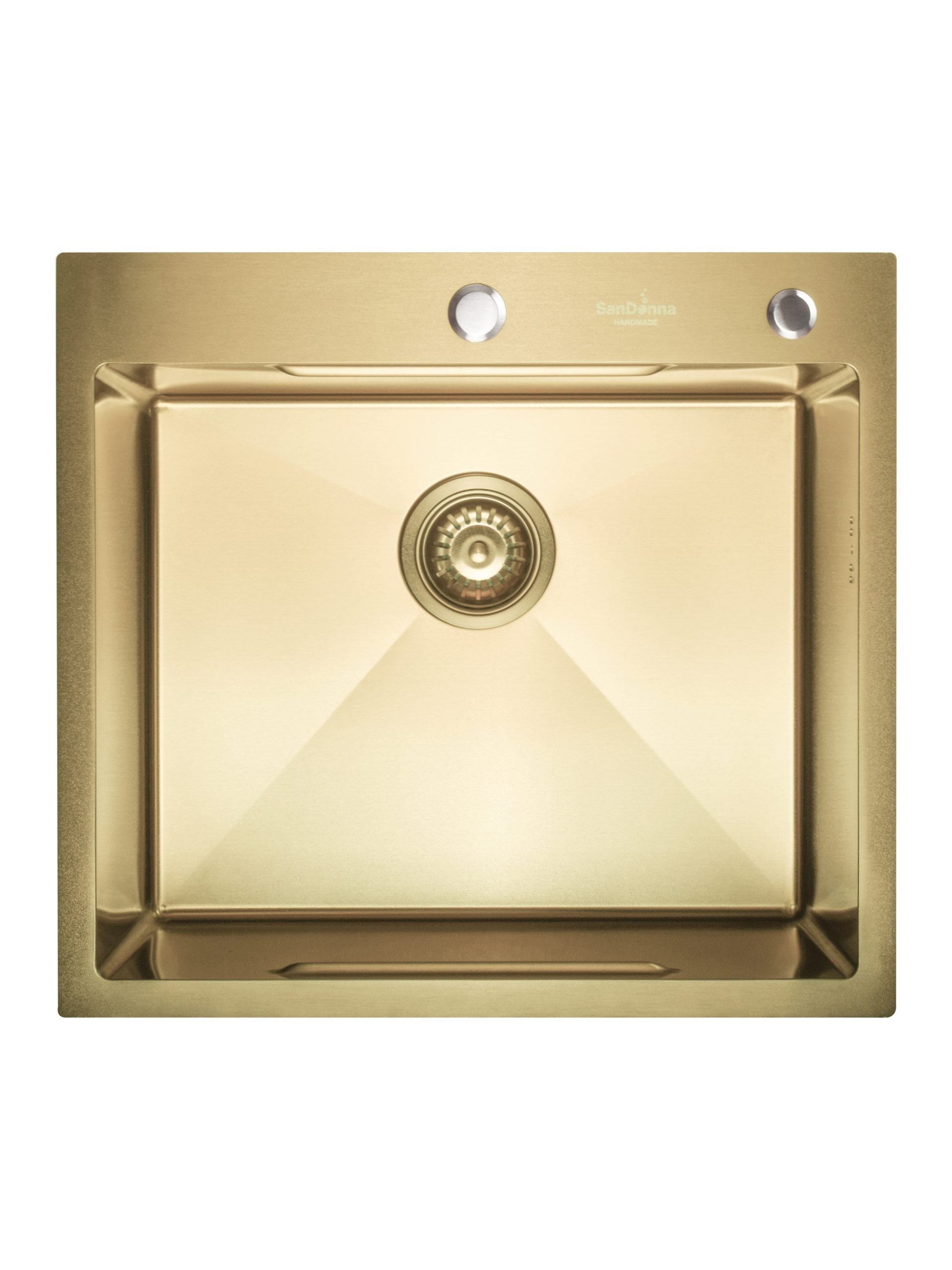 SET Chiuveta SanDonna din inox HD5550 aurie cu tavita si dozator + Baterie SanDonna ANDRA auriu-alb + ustensile de bucatarie din bambus
