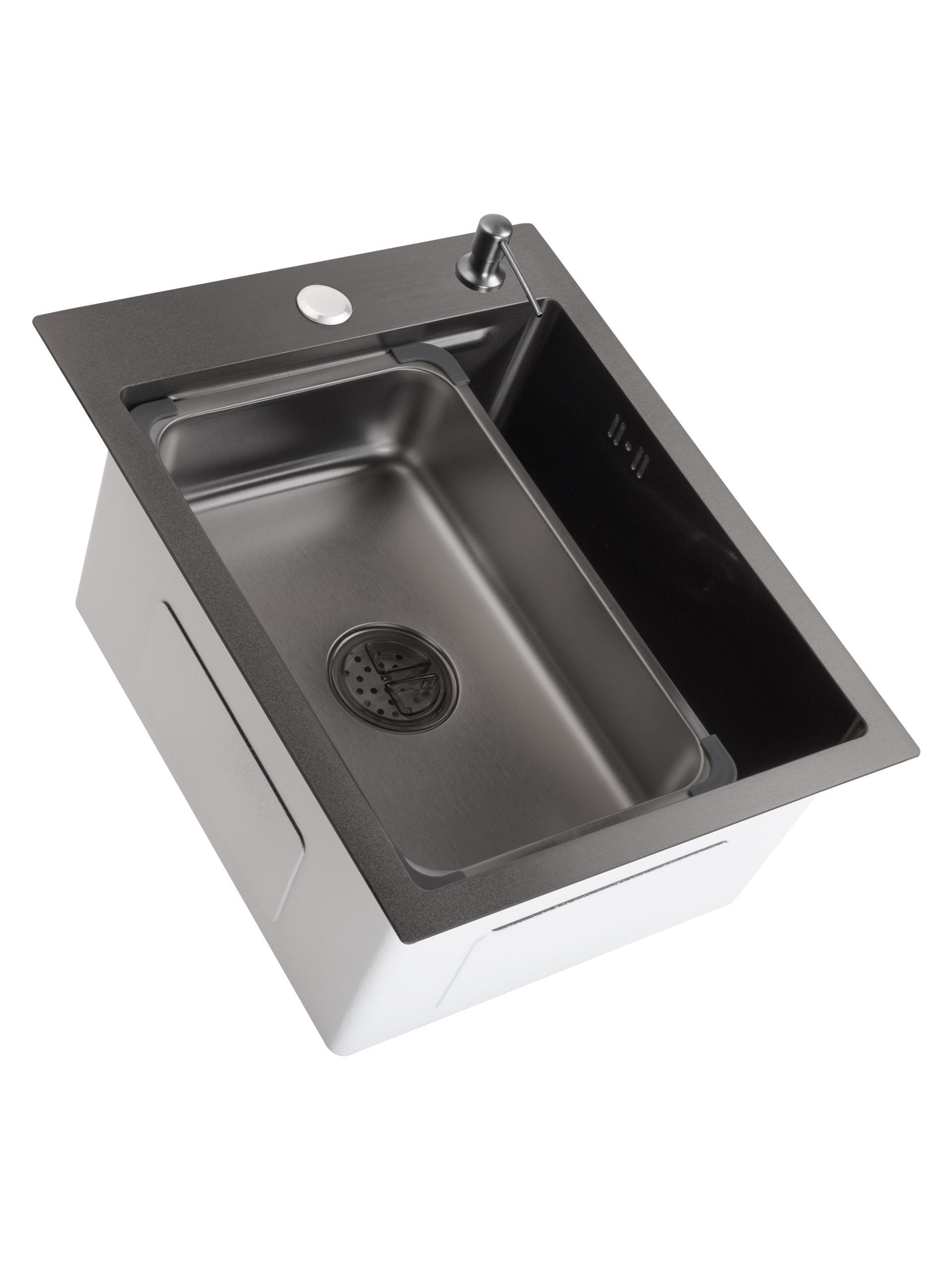 Chiuveta este ambalata individual si vine insotita de dozator sapun, scurgator, cleme, sifon.