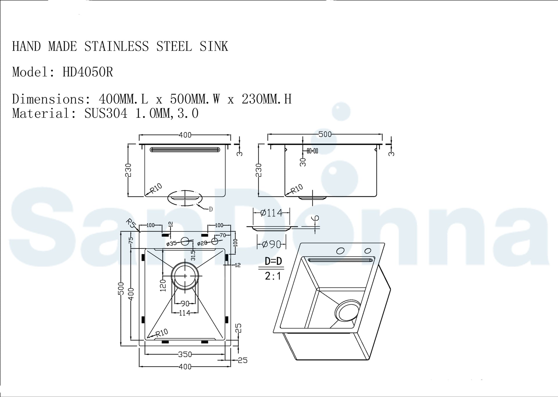 Pachet chiuveta SanDonna handmade HD4050 din inox +