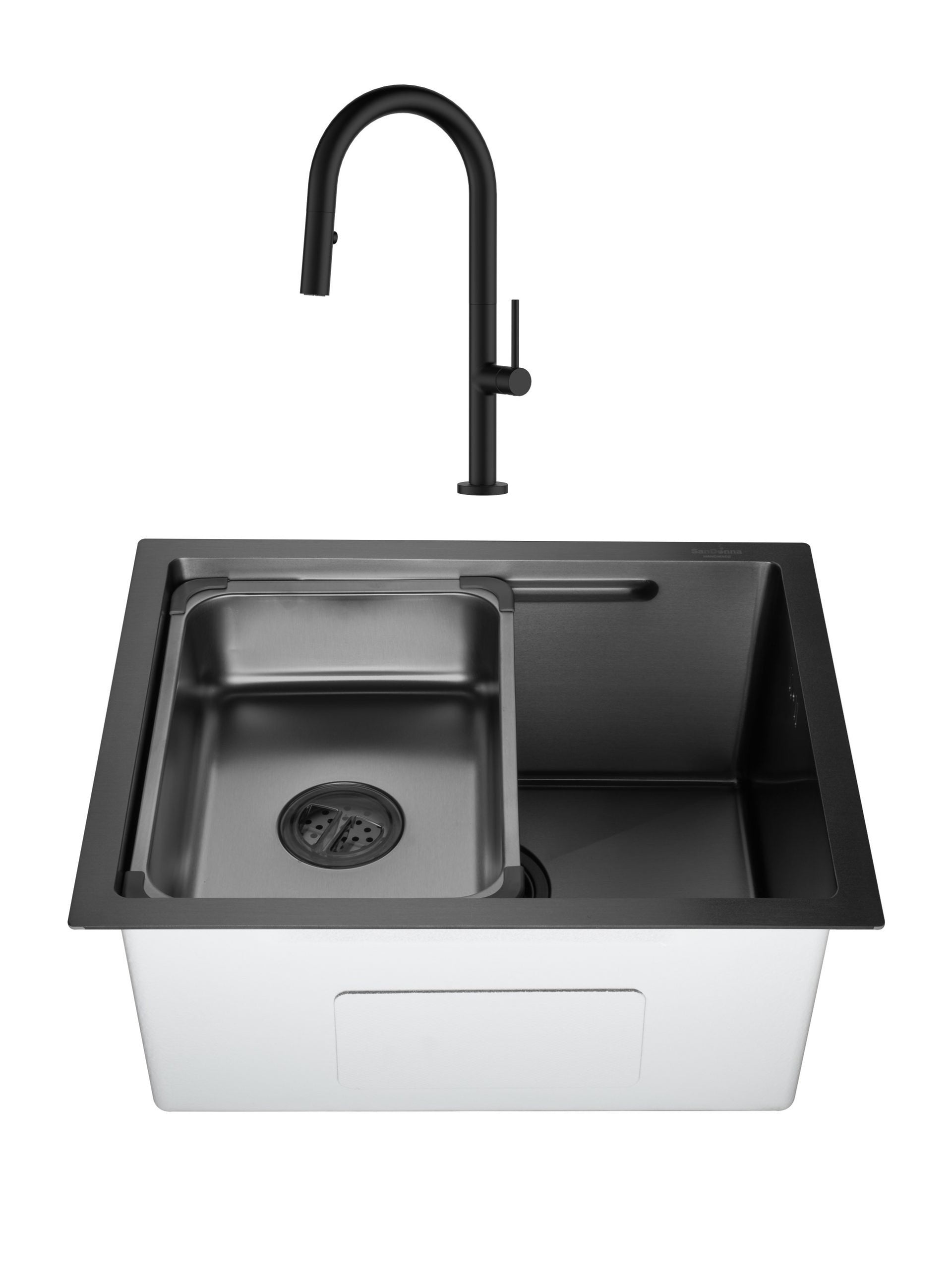 SET Chiuveta SanDonna HD5040 inox HandMade sub blat cu tavita + Baterie Sandonna Charlotte cu dus extractabil