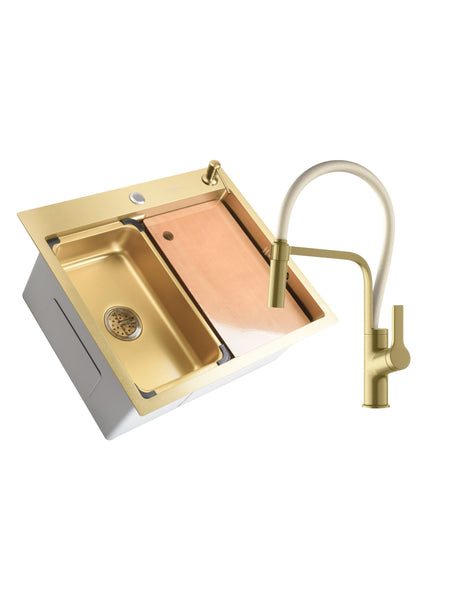 SET Chiuveta SanDonna HD6050 din inox handmade cu dozator de sapun si tavita de scurgere + Baterie flexibila SanDonna ANDRA - Alb-Auriu