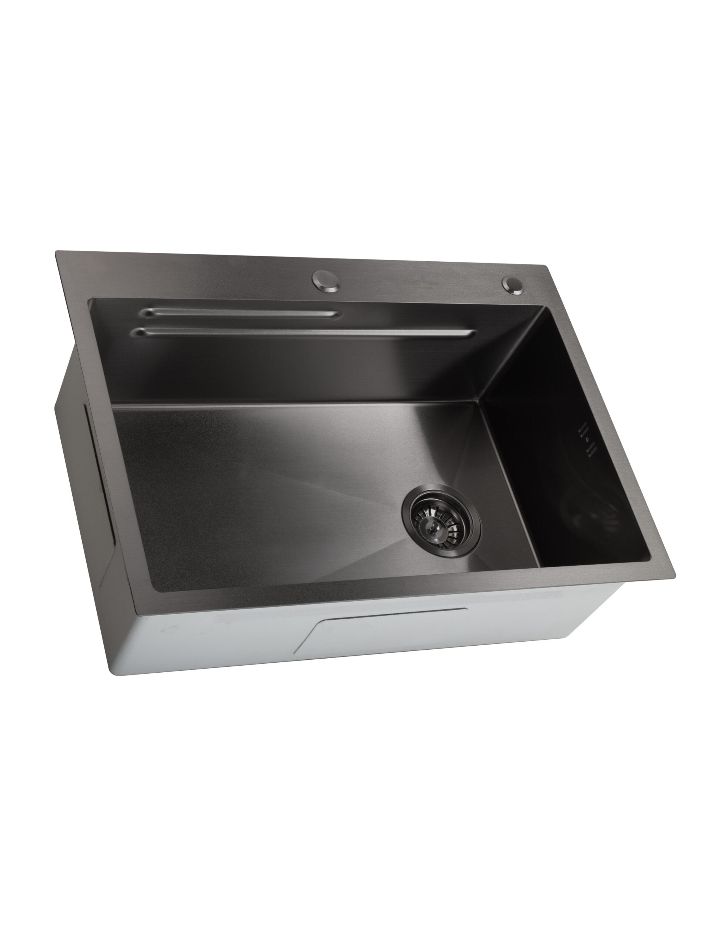 SET Chiuveta SanDonna HD7050 negru din inox handmade cu dozator de sapun, tavita de scurgere si tocator + Baterie flexibila SanDonna Charlotte negru