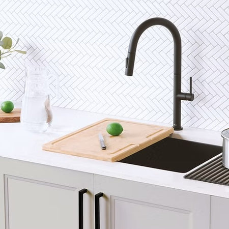 SET Chiuveta SanDonna HD7050 negru din inox handmade cu dozator de sapun, tavita de scurgere si tocator + Baterie flexibila SanDonna Charlotte negru Chiuveta HD7050 este fabricata manual din inox de cea mai inalta calitate tip AISI304, cu grosimea 1 mm cuva / 3 mm marginea superioara. Are o forma dreptunghiulara, cu o singura cuva adanca de 230 mm, cu dimensiunea de 650×400 mm. Dimensiune totala: 700x500 mm Principalele proprietati ale acestui tip de material: • Autentic, amagnetic, antiseptic si antifungic, • Rezistent la socuri mecanice, temperaturi inalte, agenti corozivi si impotriva ruginii. Modelul are un design estetic modern, potrivit pentru orice stil de bucatarie. Chiuveta este ambalata individual si vine insotita de dozator sapun, tocator de lemn, scurgator, cleme, sifon. Bateria Sandonna Charlotte se remarcă printr-un design elegant și funcționalitate optimizată, fiind potrivită pentru bucătăriile moderne. Material și Finisaj: Realizată din materiale de calitate superioară cu aspect de granit și finisaj negru mat, pentru un plus de rafinament și durabilitate. Funcționalitate cu Duș: Dispune de un duș integrat pentru versatilitate crescută și utilizare facilă. Presiune Mare: Proiectată pentru a oferi un flux constant și puternic, optimizat pentru presiune ridicată. Înălțime: 431 mm, potrivită pentru activități variate în bucătărie.