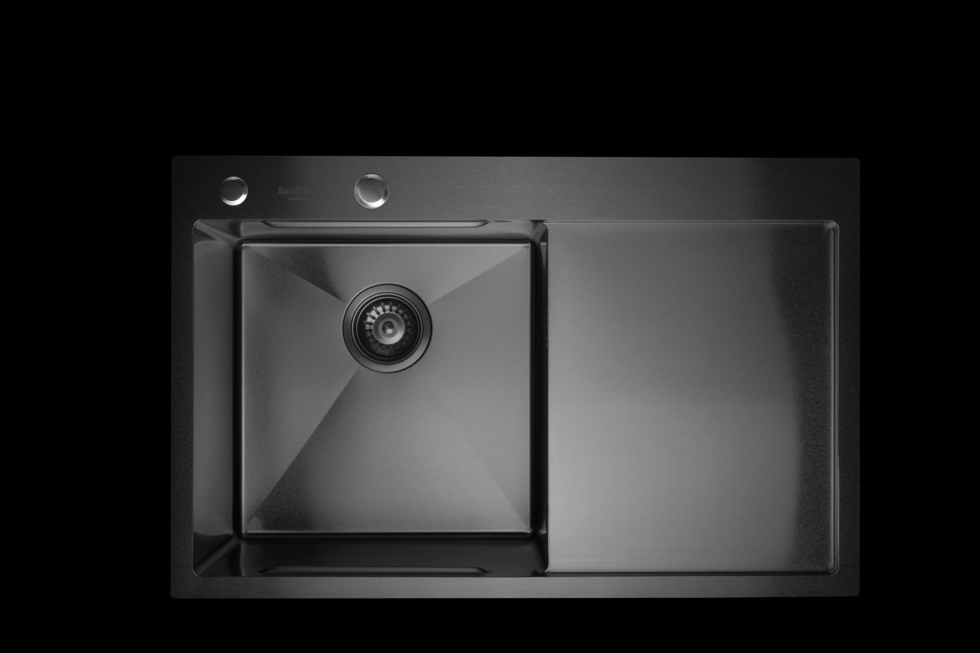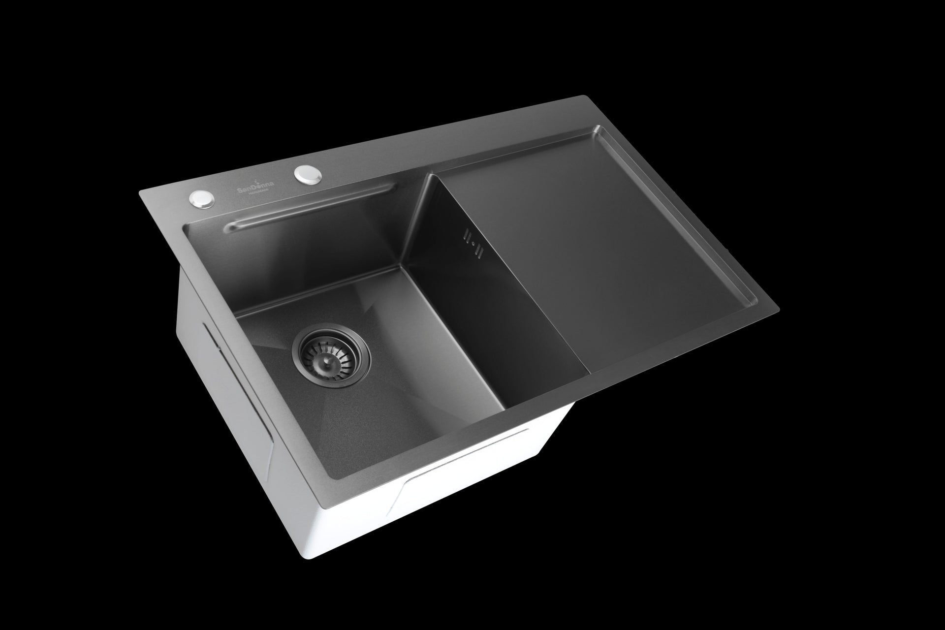 Pachet chiuveta SanDonna handmade HD7850 inox cu dozator de sapun si tavita de scurgere + Baterie SanDonna Charlotte cu dus extractabil