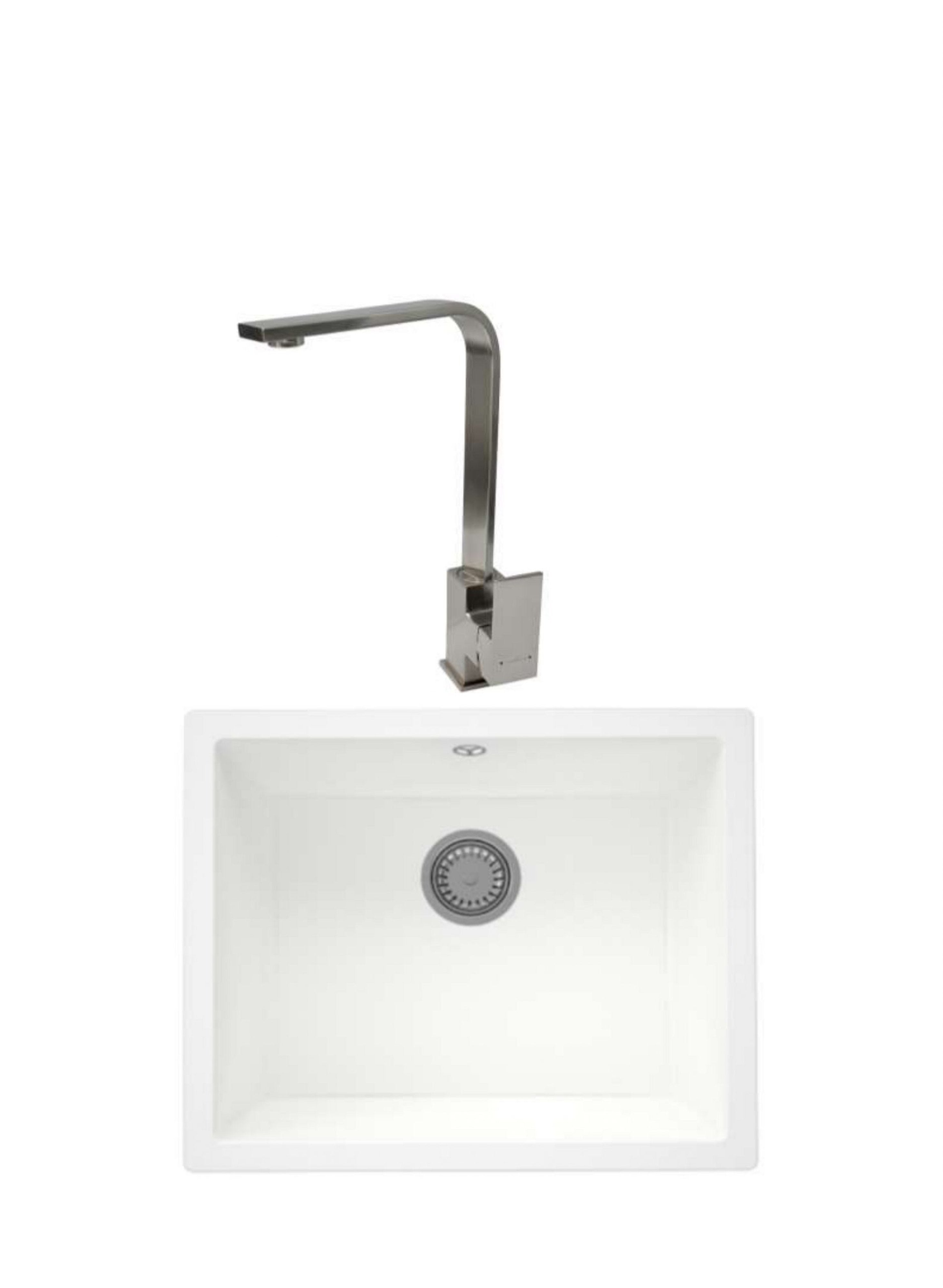 SET Chiuveta SanDonna JOANNA + Baterie SanDonna NERA Chiuveta SanDonna JOANNA este realizata din material quartz compozit. Are o forma patrata, cu o singura cuva adanca de 200 mm, cu dimensiunea de 550×460 mm. Quartz-ul este unul din materialele cel mai des recomandate din punct de vedere al igienei, suprafata sa impiedicand patrunderea si inmultirea bacteriilor si microorganismelor. Se recomanda montarea incastrata pe blatul de bucatarie. Racordurile flexibile asigura o instalare simpla si rapida. Chiuvetele au pregatite gaurile pentru montaj si nu veti avea nevoie de o carota diamantata pentru a da gaura pentru montarea bateriei. Accesorii incluse: sifon pop up cu preaplin Bateria de bucatarie SanDonna Nera, monocomanda. cu corpul patrat si linii drepte, cu un singur orificiu de montare, ofera un aspect modern si elegant bucatariei dumneavoatra. Corpul bateriei este fabricat din alamă de cea mai bună calitate, un material durabil și rezistent la coroziune, usor de curatat si mentinut. Potrivita pentru utilizare in bucatarie. Intretinere Quart: -nu se folosesc bureti de sarma pentru curatare. -atentie la obiectele ascutite/grele, acestea pot ciobi materialul. -nu se foloseste chiuveta pe post de tocator -folosirea buretilor non-abrazivi, detergent de vase si apa fierbinte; -in cazul depunerilor de calcar, se recomanda folosirea unui amestec din otet si lamaie; -dupa spalare chiuveta se usuca cu o laveta pentru a preveni depunerile de calcar; -lichidele precum cafeaua, ceaiul, se indeparteaza cu apa calda cat mai repede posibil pentru a evita o pata problematica -de evitat solutiile abrazive; pot fi inlocuite cu solutii cu granulatie foarte fina; -o data pe saptamana se recomanda folosirea unui ulei, precum uleiul de cocos sau ulei de gatit obisnuit, pe toata suprafata chiuvetei, dupa curatare si uscare, pentru a face suprafata non-poroasa -nu folositi solutii acide, tablete cu detergent pentru masina de spalat vase, solutii pentru curatarea scurgerii sau a calcarului, sau solutii pentru curatat toaleta; acestea pot duce la distrugerea permanenta a materialului -nu lasati in chiueveta pe o perioada indelungata vase din plastic/metal; acestea pot pata materialul.