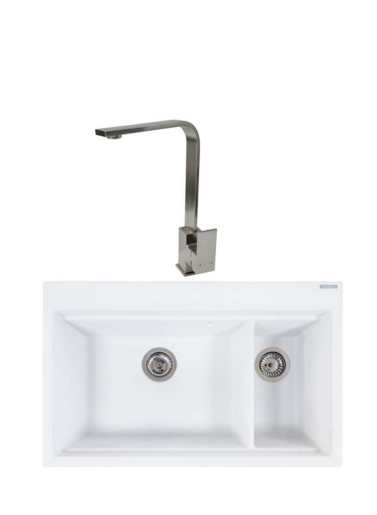 SET Chiuveta SanDonna MAGDALENA + Baterie SanDonna NERA Chiuveta SanDonna Magdalena este realizata din material quartz compozit. Are o forma dreptunghiulara, cu doua cuve adanci de 203 mm, cu dimensiunea de 760×480 mm. Quartz-ul este unul din materialele cel mai des recomandate din punct de vedere al igienei, suprafata sa impiedicand patrunderea si inmultirea bacteriilor si microorganismelor. Se recomanda montarea incastrata pe blatul de bucatarie. Racordurile flexibile asigura o instalare simpla si rapida. Chiuvetele au pregatite gaurile pentru montaj si nu veti avea nevoie de o carota diamantata pentru a da gaura pentru montarea bateriei. Accesorii incluse: sifon pop up cu preaplin Bateria de bucatarie SanDonna Nera, monocomanda. cu corpul patrat si linii drepte, cu un singur orificiu de montare, ofera un aspect modern si elegant bucatariei dumneavoatra. Corpul bateriei este fabricat din alamă de cea mai bună calitate, un material durabil și rezistent la coroziune, usor de curatat si mentinut. Potrivita pentru utilizare in bucatarie. Intretinere Quart: -nu se folosesc bureti de sarma pentru curatare. -atentie la obiectele ascutite/grele, acestea pot ciobi materialul. -nu se foloseste chiuveta pe post de tocator -folosirea buretilor non-abrazivi, detergent de vase si apa fierbinte; -in cazul depunerilor de calcar, se recomanda folosirea unui amestec din otet si lamaie; -dupa spalare chiuveta se usuca cu o laveta pentru a preveni depunerile de calcar; -lichidele precum cafeaua, ceaiul, se indeparteaza cu apa calda cat mai repede posibil pentru a evita o pata problematica -de evitat solutiile abrazive; pot fi inlocuite cu solutii cu granulatie foarte fina; -o data pe saptamana se recomanda folosirea unui ulei, precum uleiul de cocos sau ulei de gatit obisnuit, pe toata suprafata chiuvetei, dupa curatare si uscare, pentru a face suprafata non-poroasa -nu folositi solutii acide, tablete cu detergent pentru masina de spalat vase, solutii pentru curatarea scurgerii sau a calcarului, sau solutii pentru curatat toaleta; acestea pot duce la distrugerea permanenta a materialului -nu lasati in chiueveta pe o perioada indelungata vase din plastic/metal; acestea pot pata materialul.