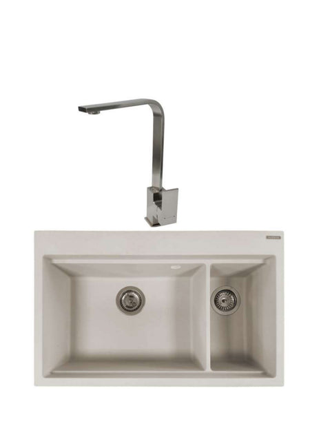 SET Chiuveta SanDonna MAGDALENA + Baterie SanDonna NERA Chiuveta SanDonna Magdalena este realizata din material quartz compozit. Are o forma dreptunghiulara, cu doua cuve adanci de 203 mm, cu dimensiunea de 760×480 mm. Quartz-ul este unul din materialele cel mai des recomandate din punct de vedere al igienei, suprafata sa impiedicand patrunderea si inmultirea bacteriilor si microorganismelor. Se recomanda montarea incastrata pe blatul de bucatarie. Racordurile flexibile asigura o instalare simpla si rapida. Chiuvetele au pregatite gaurile pentru montaj si nu veti avea nevoie de o carota diamantata pentru a da gaura pentru montarea bateriei. Accesorii incluse: sifon pop up cu preaplin Bateria de bucatarie SanDonna Nera, monocomanda. cu corpul patrat si linii drepte, cu un singur orificiu de montare, ofera un aspect modern si elegant bucatariei dumneavoatra. Corpul bateriei este fabricat din alamă de cea mai bună calitate, un material durabil și rezistent la coroziune, usor de curatat si mentinut. Potrivita pentru utilizare in bucatarie. Intretinere Quart: -nu se folosesc bureti de sarma pentru curatare. -atentie la obiectele ascutite/grele, acestea pot ciobi materialul. -nu se foloseste chiuveta pe post de tocator -folosirea buretilor non-abrazivi, detergent de vase si apa fierbinte; -in cazul depunerilor de calcar, se recomanda folosirea unui amestec din otet si lamaie; -dupa spalare chiuveta se usuca cu o laveta pentru a preveni depunerile de calcar; -lichidele precum cafeaua, ceaiul, se indeparteaza cu apa calda cat mai repede posibil pentru a evita o pata problematica -de evitat solutiile abrazive; pot fi inlocuite cu solutii cu granulatie foarte fina; -o data pe saptamana se recomanda folosirea unui ulei, precum uleiul de cocos sau ulei de gatit obisnuit, pe toata suprafata chiuvetei, dupa curatare si uscare, pentru a face suprafata non-poroasa -nu folositi solutii acide, tablete cu detergent pentru masina de spalat vase, solutii pentru curatarea scurgerii sau a calcarului, sau solutii pentru curatat toaleta; acestea pot duce la distrugerea permanenta a materialului -nu lasati in chiueveta pe o perioada indelungata vase din plastic/metal; acestea pot pata materialul.