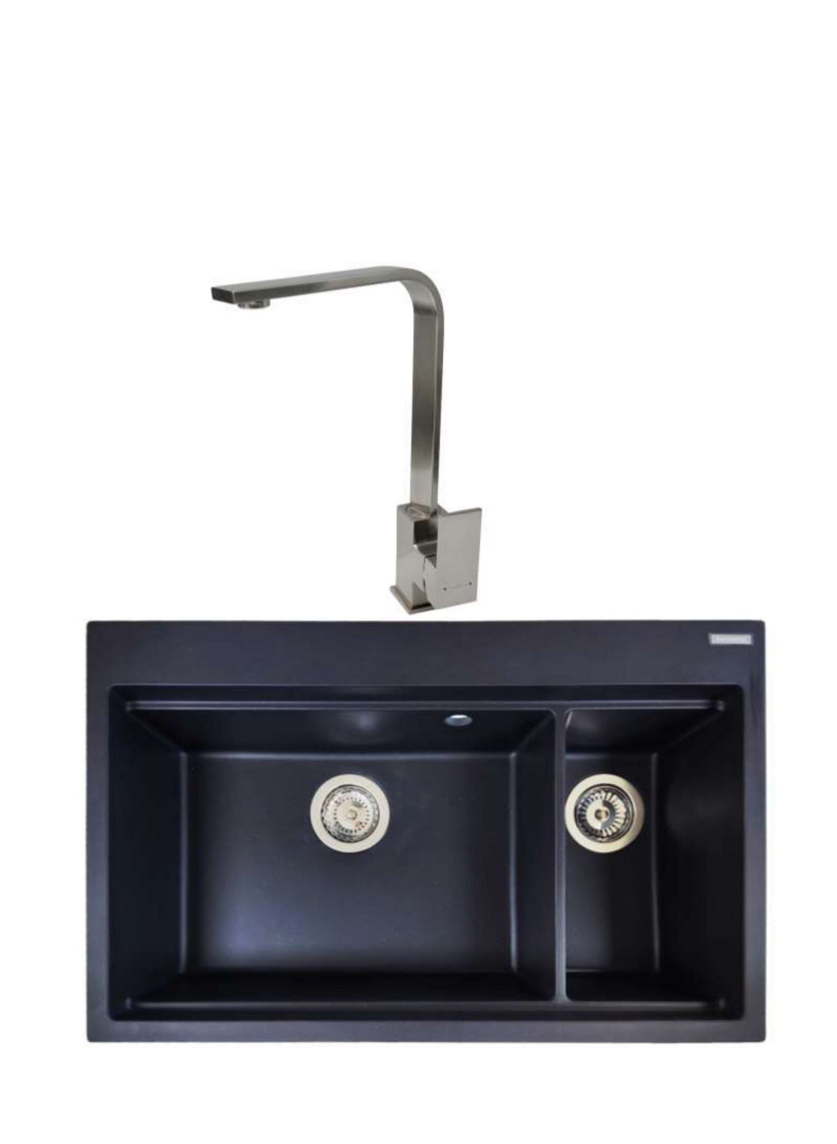 SET Chiuveta SanDonna MAGDALENA + Baterie SanDonna NERA Chiuveta SanDonna Magdalena este realizata din material quartz compozit. Are o forma dreptunghiulara, cu doua cuve adanci de 203 mm, cu dimensiunea de 760×480 mm. Quartz-ul este unul din materialele cel mai des recomandate din punct de vedere al igienei, suprafata sa impiedicand patrunderea si inmultirea bacteriilor si microorganismelor. Se recomanda montarea incastrata pe blatul de bucatarie. Racordurile flexibile asigura o instalare simpla si rapida. Chiuvetele au pregatite gaurile pentru montaj si nu veti avea nevoie de o carota diamantata pentru a da gaura pentru montarea bateriei. Accesorii incluse: sifon pop up cu preaplin Bateria de bucatarie SanDonna Nera, monocomanda. cu corpul patrat si linii drepte, cu un singur orificiu de montare, ofera un aspect modern si elegant bucatariei dumneavoatra. Corpul bateriei este fabricat din alamă de cea mai bună calitate, un material durabil și rezistent la coroziune, usor de curatat si mentinut. Potrivita pentru utilizare in bucatarie. Intretinere Quart: -nu se folosesc bureti de sarma pentru curatare. -atentie la obiectele ascutite/grele, acestea pot ciobi materialul. -nu se foloseste chiuveta pe post de tocator -folosirea buretilor non-abrazivi, detergent de vase si apa fierbinte; -in cazul depunerilor de calcar, se recomanda folosirea unui amestec din otet si lamaie; -dupa spalare chiuveta se usuca cu o laveta pentru a preveni depunerile de calcar; -lichidele precum cafeaua, ceaiul, se indeparteaza cu apa calda cat mai repede posibil pentru a evita o pata problematica -de evitat solutiile abrazive; pot fi inlocuite cu solutii cu granulatie foarte fina; -o data pe saptamana se recomanda folosirea unui ulei, precum uleiul de cocos sau ulei de gatit obisnuit, pe toata suprafata chiuvetei, dupa curatare si uscare, pentru a face suprafata non-poroasa -nu folositi solutii acide, tablete cu detergent pentru masina de spalat vase, solutii pentru curatarea scurgerii sau a calcarului, sau solutii pentru curatat toaleta; acestea pot duce la distrugerea permanenta a materialului -nu lasati in chiueveta pe o perioada indelungata vase din plastic/metal; acestea pot pata materialul.