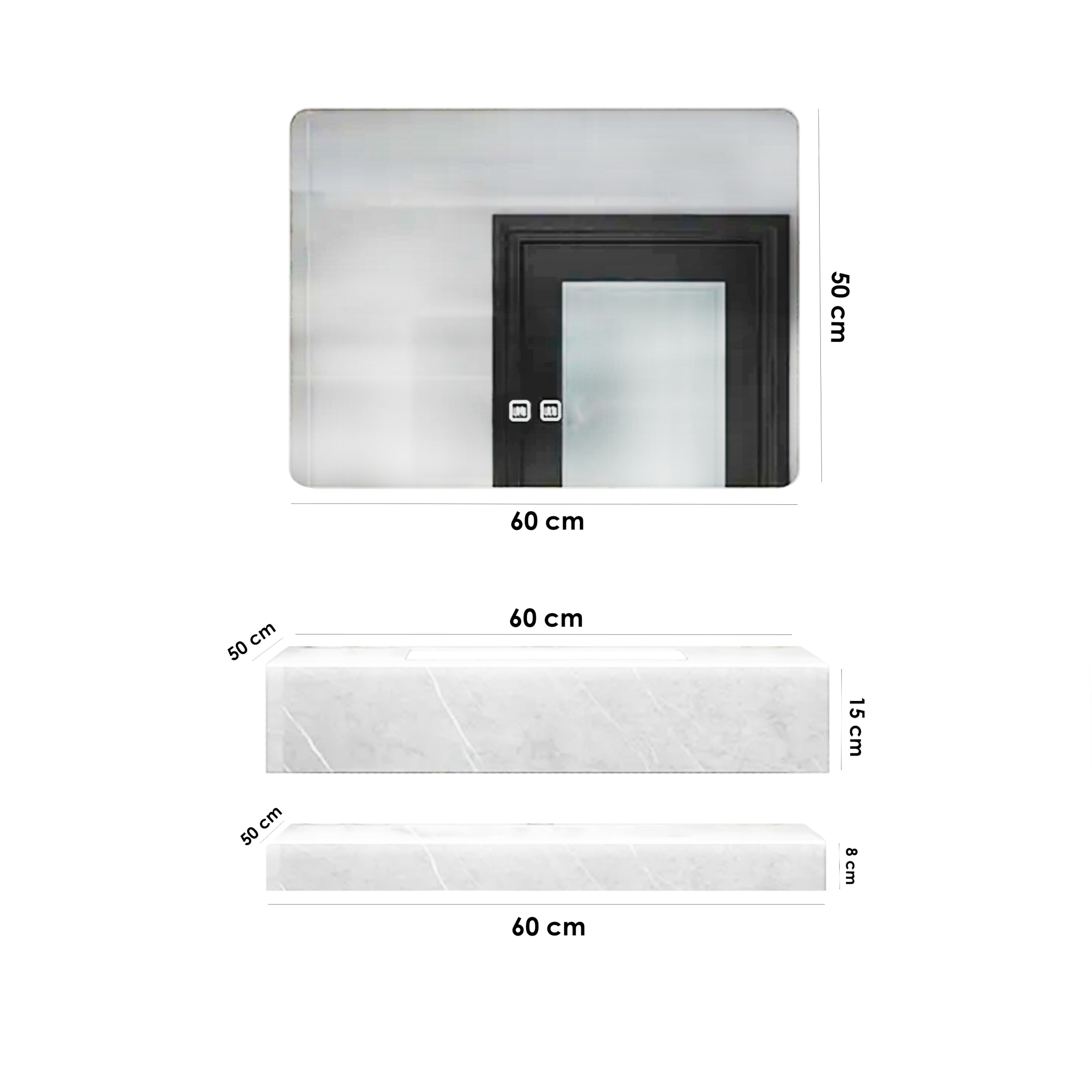 Setul de baie Sandonna LUMI alb Componente: - Oglindă cu LED: Adaugă un aer contemporan Oferă lumină suplimentară, ideală pentru un spațiu elegant și funcțional - Lavoar din piatră sinterizată: Material inovator, obținut prin presare și încălzire la temperaturi foarte ridicate Duritate excepțională și rezistență deosebită - Raft: Oferă un spațiu de depozitare practic și estetic Completează setul armonios Atribute piatră sinterizată: - Suprafață impermeabilă - Rezistentă la zgârieturi, pete și coroziune - Ideală pentru utilizări în spații care necesită durabilitate și igienă (băi și bucătării) - Aspect natural