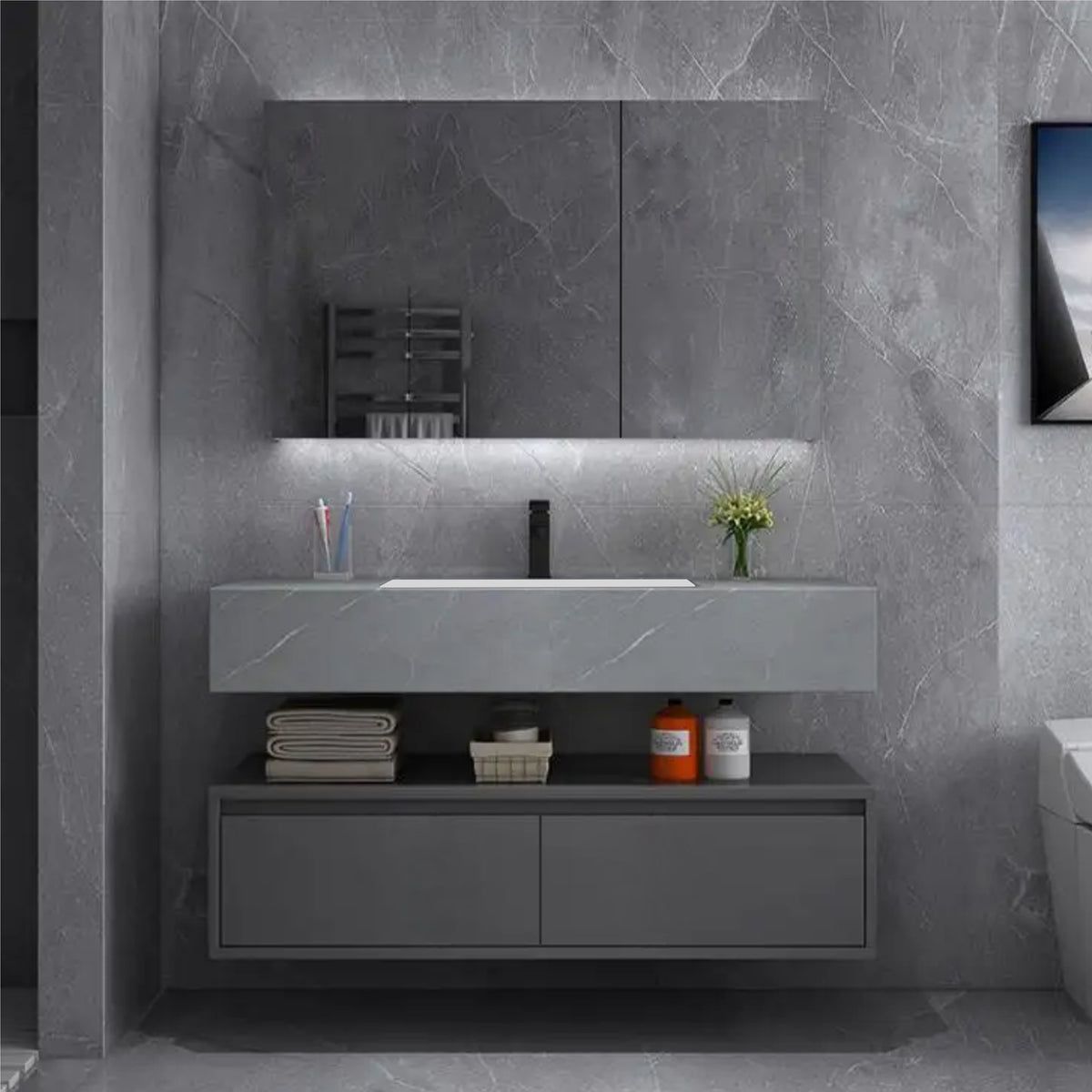 Setul de baie Sandonna LUMI gri Componente: - Dulap cu oglinda LED: Adaugă un aer contemporan Oferă lumină suplimentară, ideală pentru un spațiu elegant și funcțional - Lavoar din piatră sinterizată: Material inovator, obținut prin presare și încălzire la temperaturi foarte ridicate Duritate excepțională și rezistență deosebită - Sertar: Oferă un spațiu de depozitare practic și estetic Completează setul armonios Atribute piatră sinterizată: - Suprafață impermeabilă - Rezistentă la zgârieturi, pete și coroziune - Ideală pentru utilizări în spații care necesită durabilitate și igienă (băi și bucătării) - Aspect natural