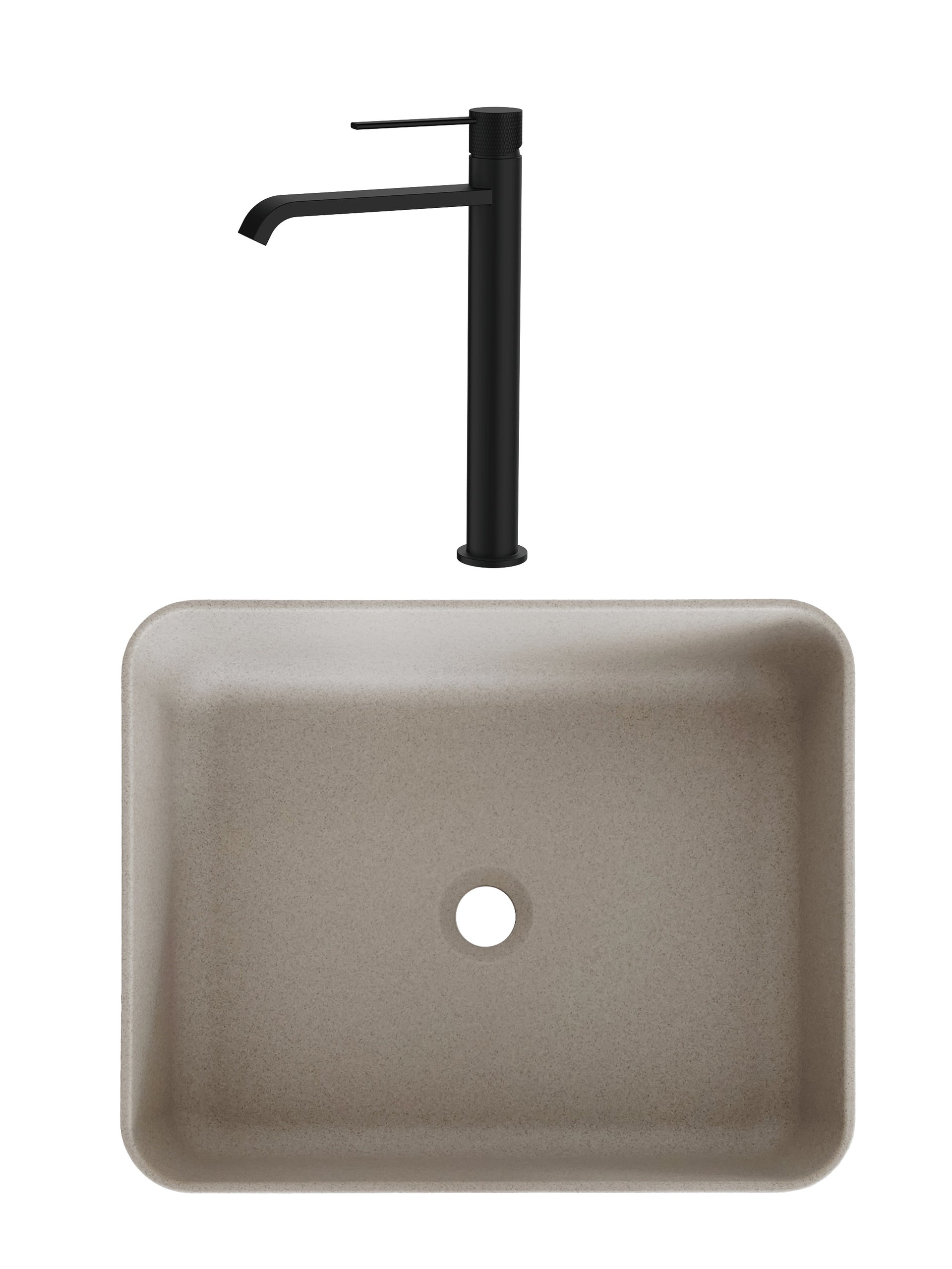 SET Lavoar de baie din granit compozit Niva + Baterie Dorota negru - Bej
