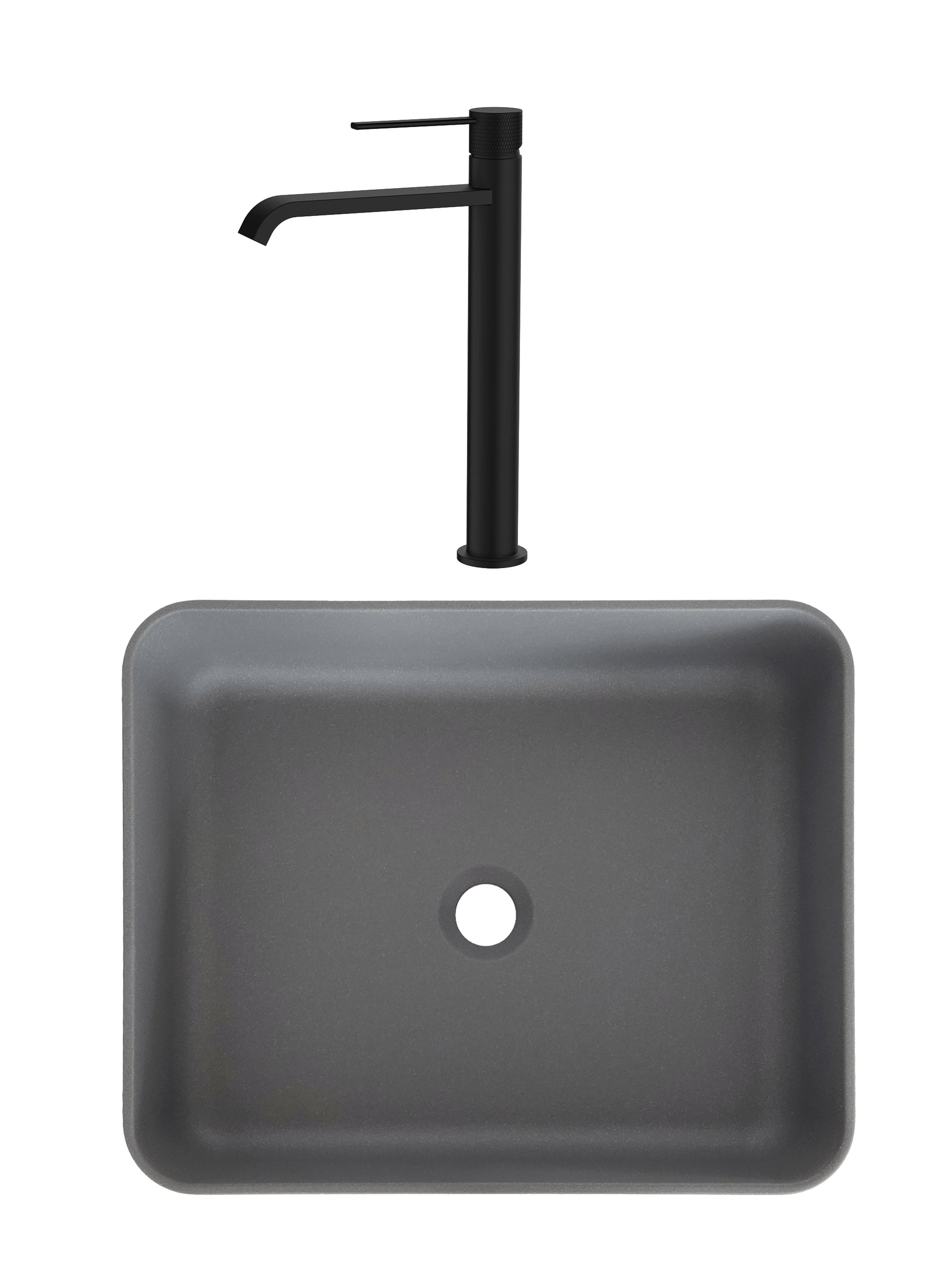 SET Lavoar de baie din granit compozit Niva + Baterie Dorota negru - Gri