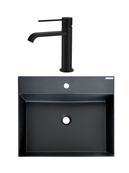 SET Lavoar de baie din granit compozit Sencillo + Baterie Agata negru - Negru
