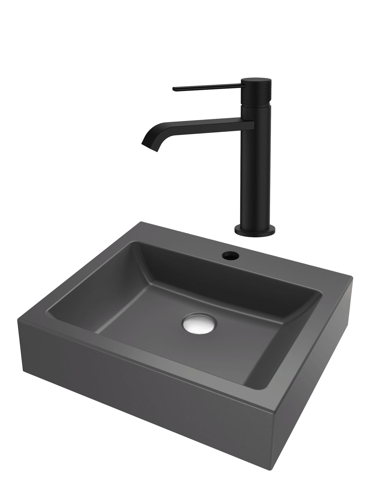 SET Lavoar de baie din granit compozit Timo + Baterie Agata negru - Gri