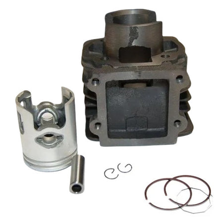 Set motor complet vertical compatibil pentru scutere in 2 timpi 80cc racire pe aer. Kitul contine cilindru, piston, bolt, sigurante, segmenti. Diametru piston 47mm, bolt 10mm SPECIFICATII: Diametru alezaj: 47 mm Inaltime totala: 88 mm Inaltime corp cilindru: 64.5 mm Inaltime fusta: 23.5 mm Diametru fusta: 51 mm Distanta prezoane cilindru: 63 mm Distanta prezoane evacuare: 48 mm Distanta prezoane admisie: 58.5 mm Compatibilitati : Aprilia Amico 50 AC Aprilia SR 50 (pana in anul 1993 - cilindru vertical) Italjet Pista 2 AC Italjet Pista AC Italjet Scoop AC Italjet Yankee AC MBK Booster 12 50 AC (incepand cu anul 04) MBK Booster 50 AC MBK Booster 50 NG AC MBK Booster Naked AC MBK Booster Rocket 50 AC MBK Booster Spirit 50 AC MBK Booster Track 50 AC MBK Sorriso AC (pana in anul 1995) MBK Stunt 50 AC MBK Target AC Rex Escape AC 2 timpi Rex Rex AC 2 timpi Rex Rexy AC 2 timpi Rex Silverstreet AC 2 timpi Yamaha BW s 12 50 AC (incepand cu anul 2004) Yamaha BW s 50 AC Yamaha BW s 50 NG AC Yamaha BW s Bump 50 AC Yamaha Beluga AC Yamaha Slider 50 AC Yamaha Spy Yamaha Zuma AC Yamaha Zuma II AC