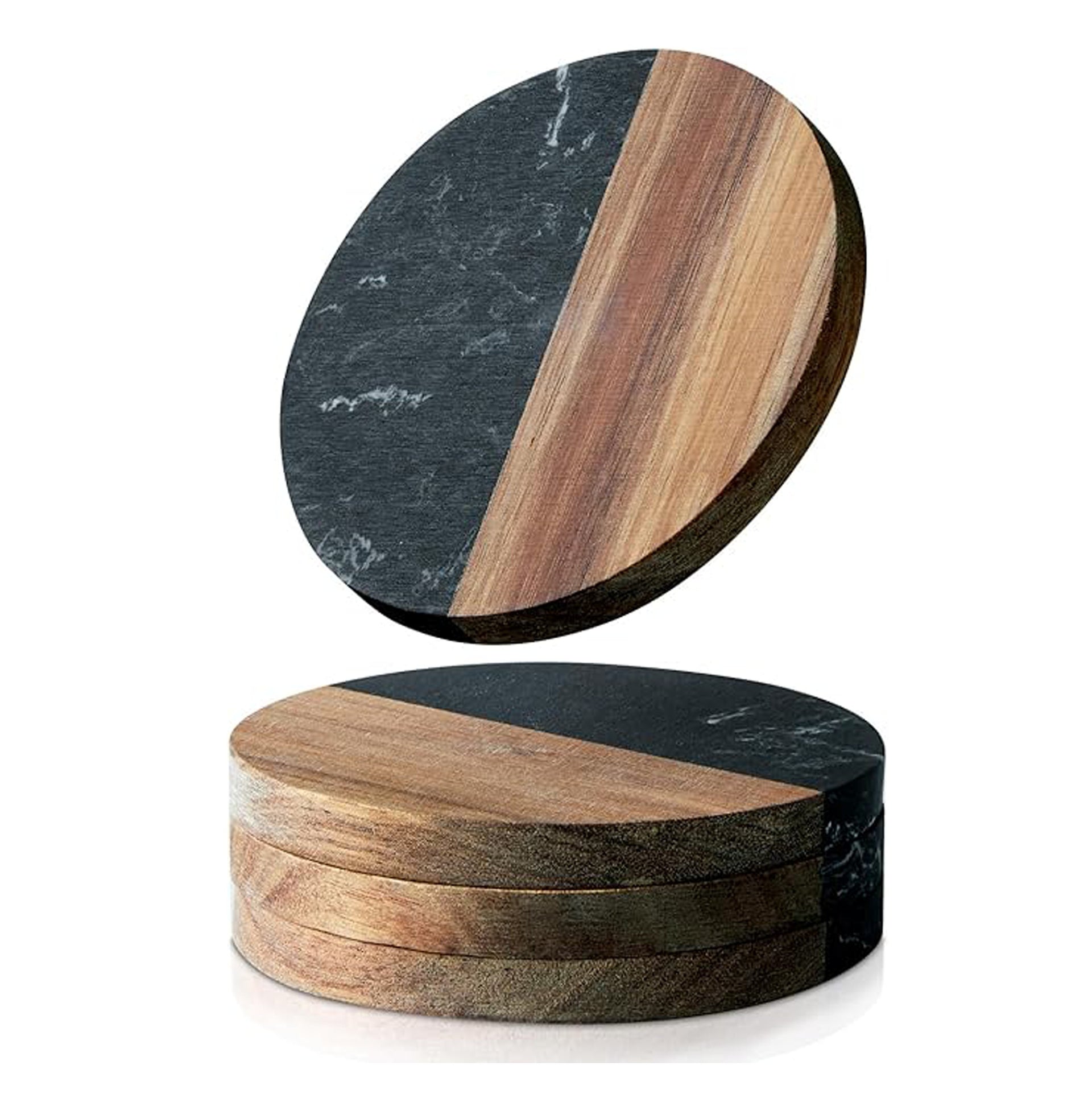 Suport de pahare rotund din marmura si lemn SanDonna - Negru