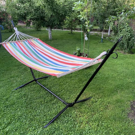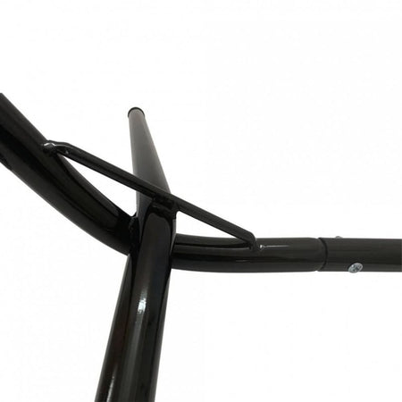 Suportul pentru hamac VivaTechnix VMD-1013 este realizat din teava de otel cu diametrul de 33.7 mm si grosime de 3 mm, oferind stabilitate si rezistenta la utilizare indelungata. Structura robusta, cu zone de curbare rigidizate si carlige de prindere solide, garanteaza siguranta in timpul folosirii.