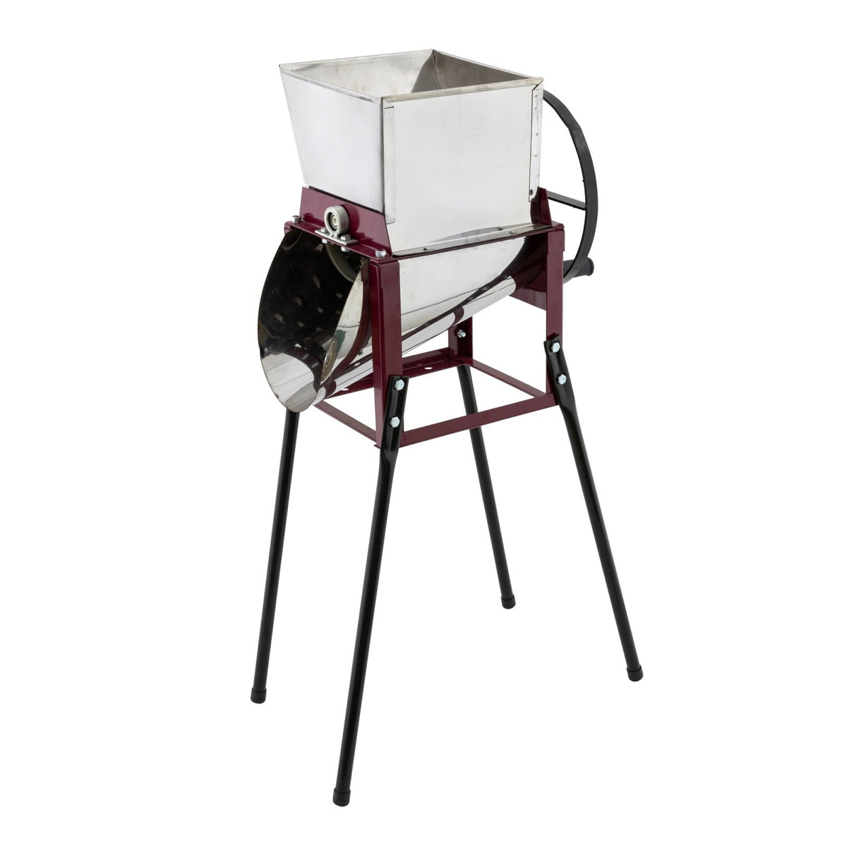 Structura este realizata din metal rezistent, acoperit cu vopsea aplicata prin pulverizare, ceea ce ii ofera durabilitate in timp si protectie impotriva coroziunii. Productivitatea este de 5 kg la 60 de rotatii, ceea ce il face perfect pentru utilizare in gospodarii sau ferme mici.