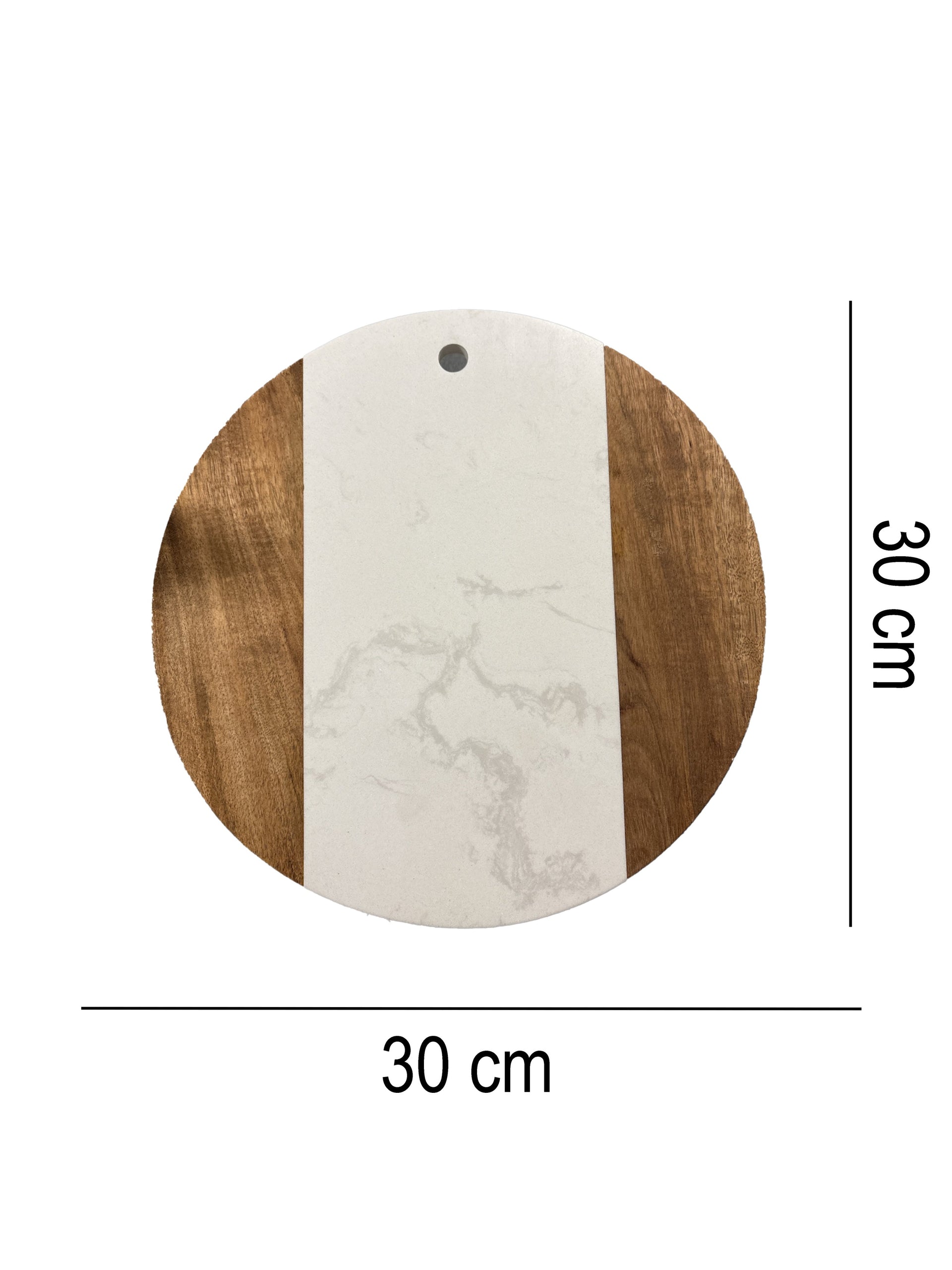 Tocator rotund de bucatarie din marmura si lemn SanDonna alb - mare