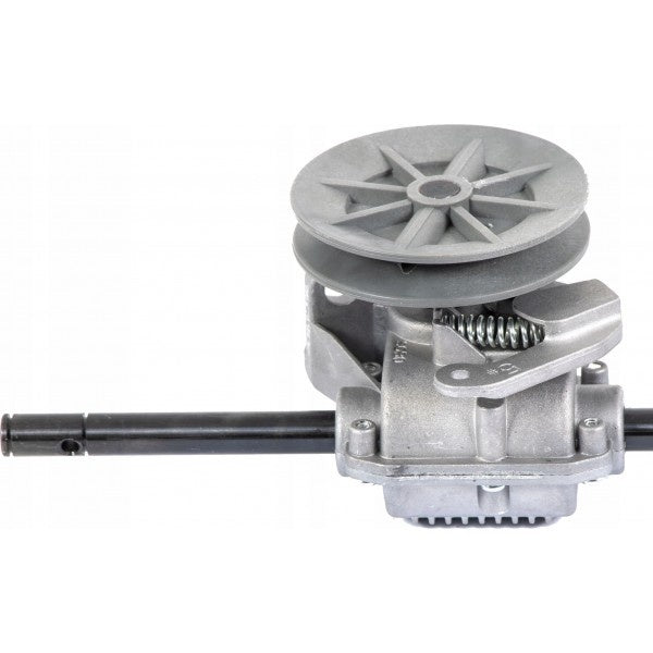 Transmisie masina de tuns gazonul Faworyt DK41N130. Dimensiuni: Diametrul arborelui angrenajului: 12,7 mm Lungimea totala a arborelui angrenajului: 445 mm Lungimea laturii mai scurte a arborelui: 95 mm Lungimea laturii mai lungi a arborelui: 265 mm Diametrul scripetelui: 86 mm Cod OEM: 606082