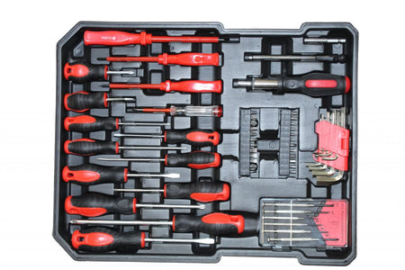 Aceasta trusa ofera o gama completa de unelte de calitate, perfect organizate intr-un troller robust. Este solutia ideala pentru profesionisti si gospodari care au nevoie de un set complet si usor de transportat pentru orice tip de lucrare.