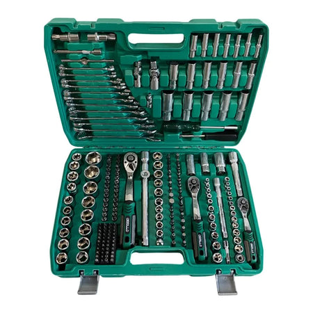 Trusa de scule 216 piese este ideala pentru mecanici, electricieni si pasionati de bricolaj. Include clichet, chei tubulare, biti, prelungitoare si alte accesorii esentiale, toate fabricate din otel Cr-V tratat termic pentru rezistenta si durabilitate.