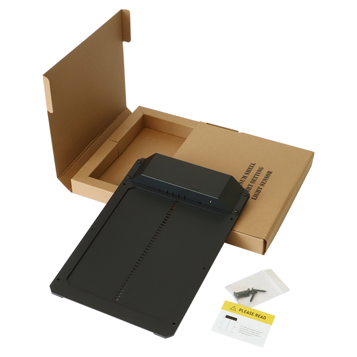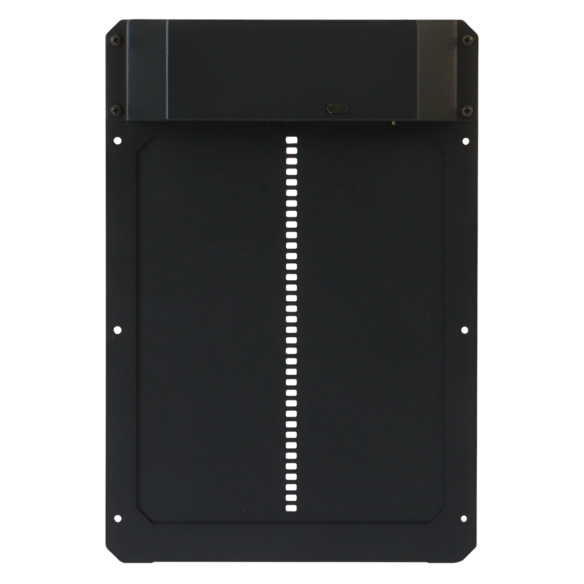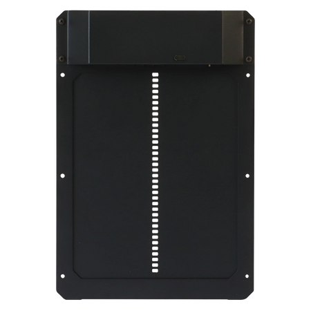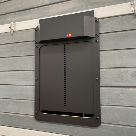 Montajul este simplu, usa avand gauri predefinite pentru suruburi. Functioneaza cu 2 baterii AA incluse in colet, cu autonomie de pana la un an. Dimensiunea de 35x24 cm se potriveste majoritatii cotetelor standard. Include sinele de ghidaj, usa si unitatea de control.