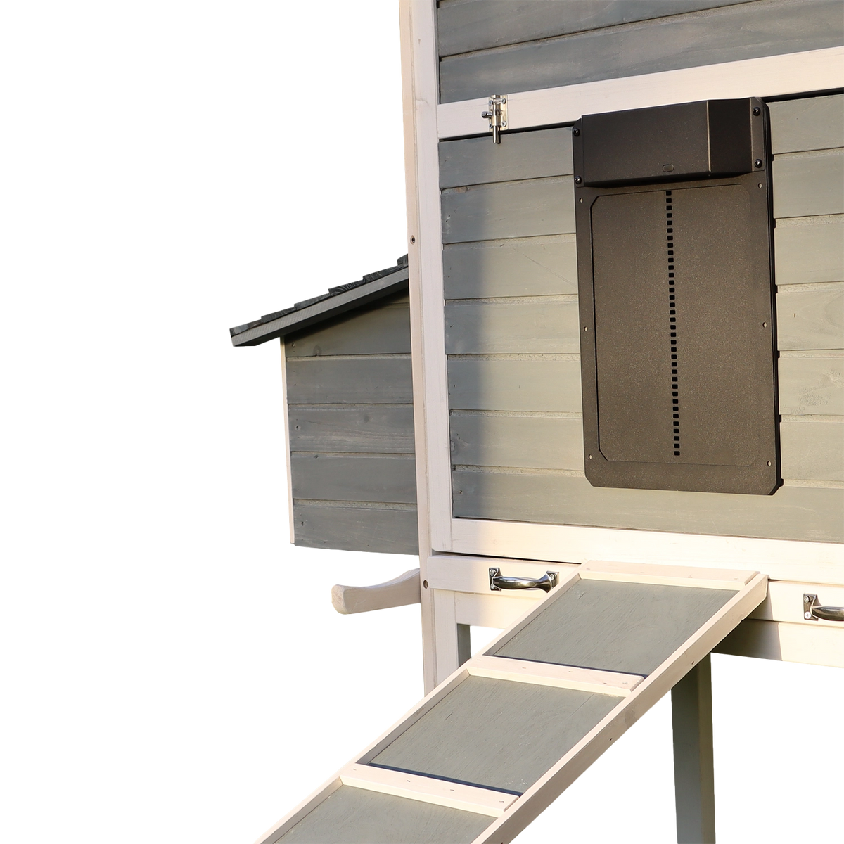 Pentru ca protejeaza gainile impotriva pradatorilor, functioneaza sigur zi si noapte si elimina grija deschiderii si inchiderii manuale a cotetului.