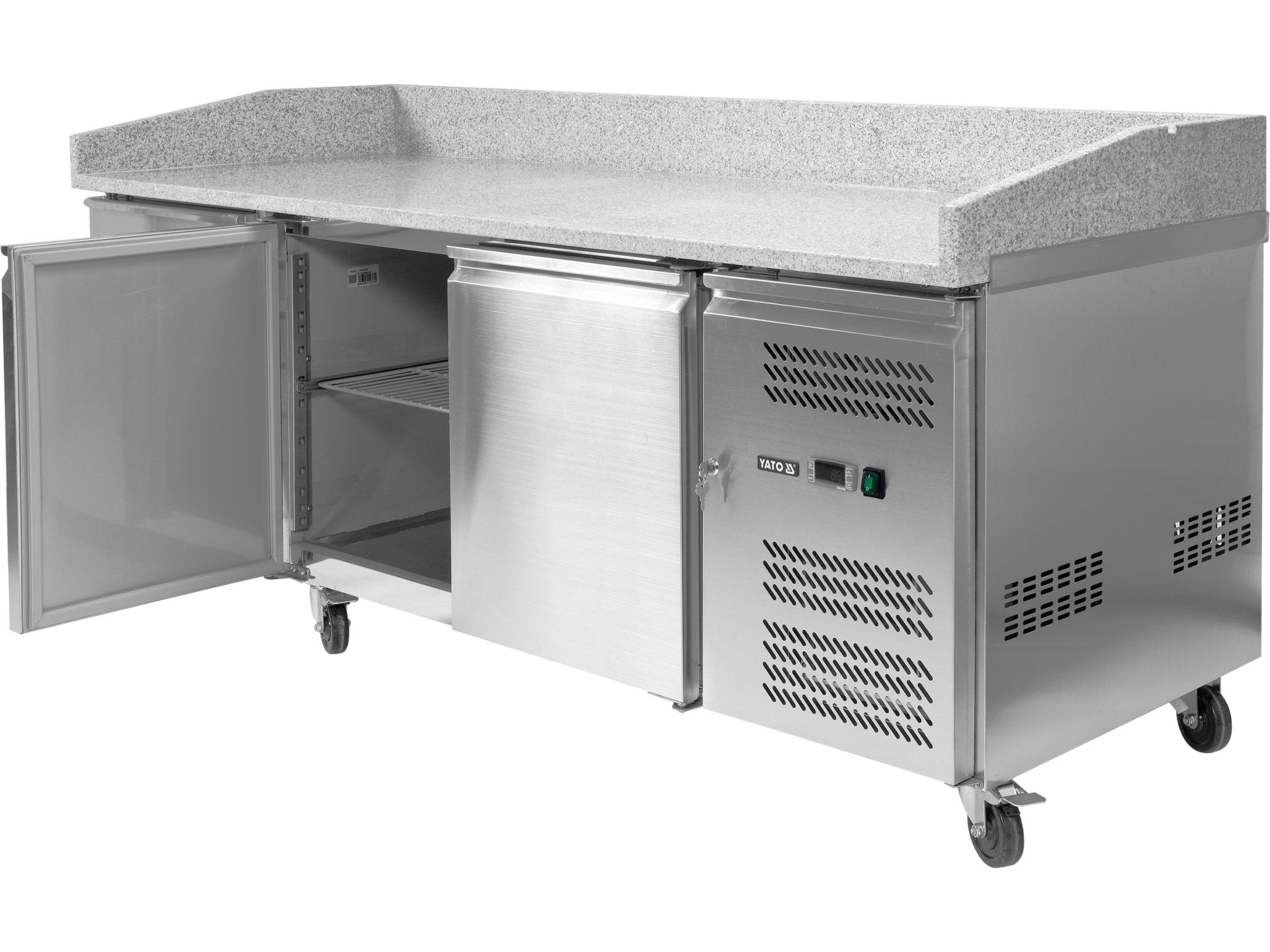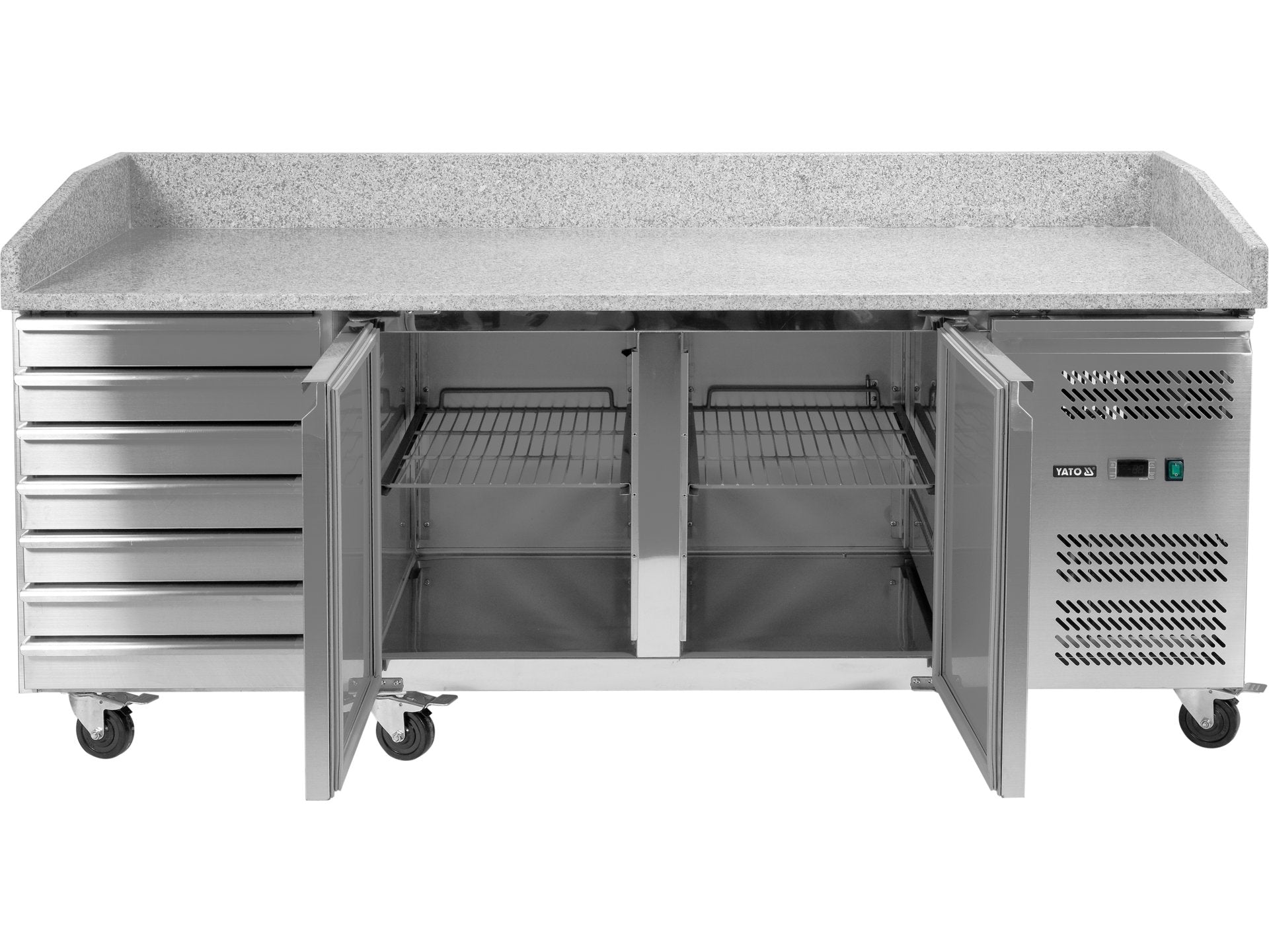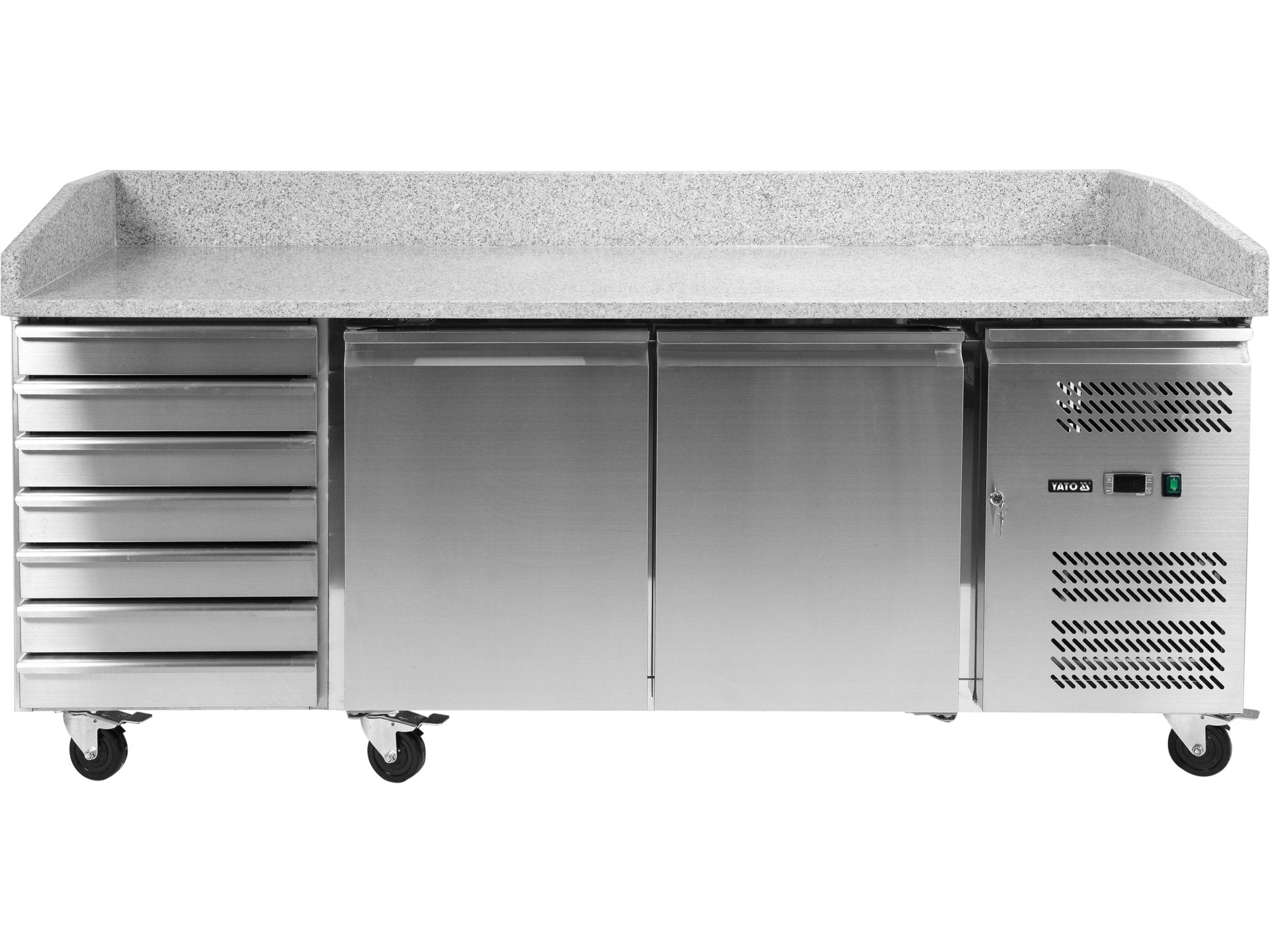 MASĂ RECE PENTRU PIZZA, BLAT DIN GRANIT, 2 UȘI + 7 SERTARE, 580L